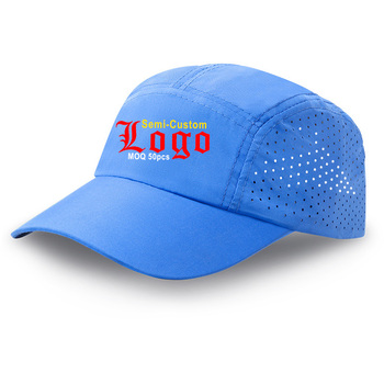 LDSC Wholesale Low MOQ Semi-Custom Embroidery Logo 5 Panel Trucker Hats Fast Delivery Laser Drilling Mesh Printing Snapback Caps for Sport