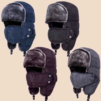 TIS Wholesale Winter Thickened Windproof Warm Embroidery Aviator Hat Ready Made Ear and Neck Protection Trapper Hats with Mask