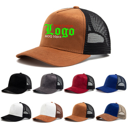 LDSC Wholesale Ready Made Suede 5 Panel Trucker Hat Semi Custom Embroidery Logo Mesh Snapback Baseball Caps for Outdoor Sport